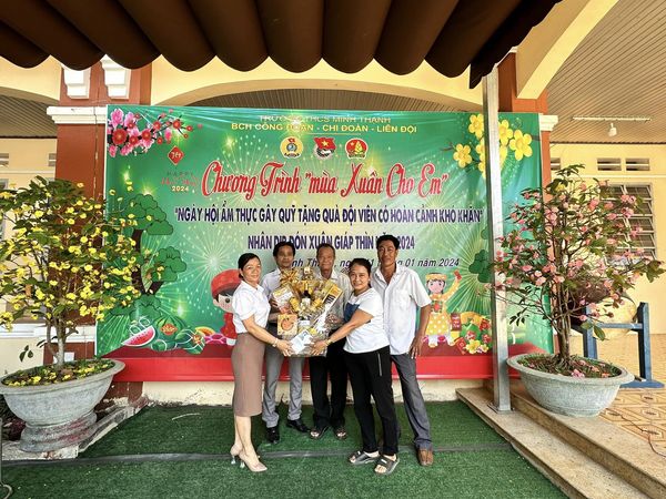 Thc hin kế hoch hot động Đội năm hc 2023-2024; Vi tinh thn tương thân tương ái hướng đến mc đích giúp các em HS có hoàn cnh khó khăn đều được đón 1 cái Tết đầm m, mang đến s m áp và nim vui trong nhng ngày Tết c truyn ca dân tc. Được s ch đạo ca BGH, Liên Đội trường THCS Minh Thnh phi hp vi Công đoàn, Chi Đoàn trường đã phát động phong trào “Mùa xuân cho em” vi hình thc: