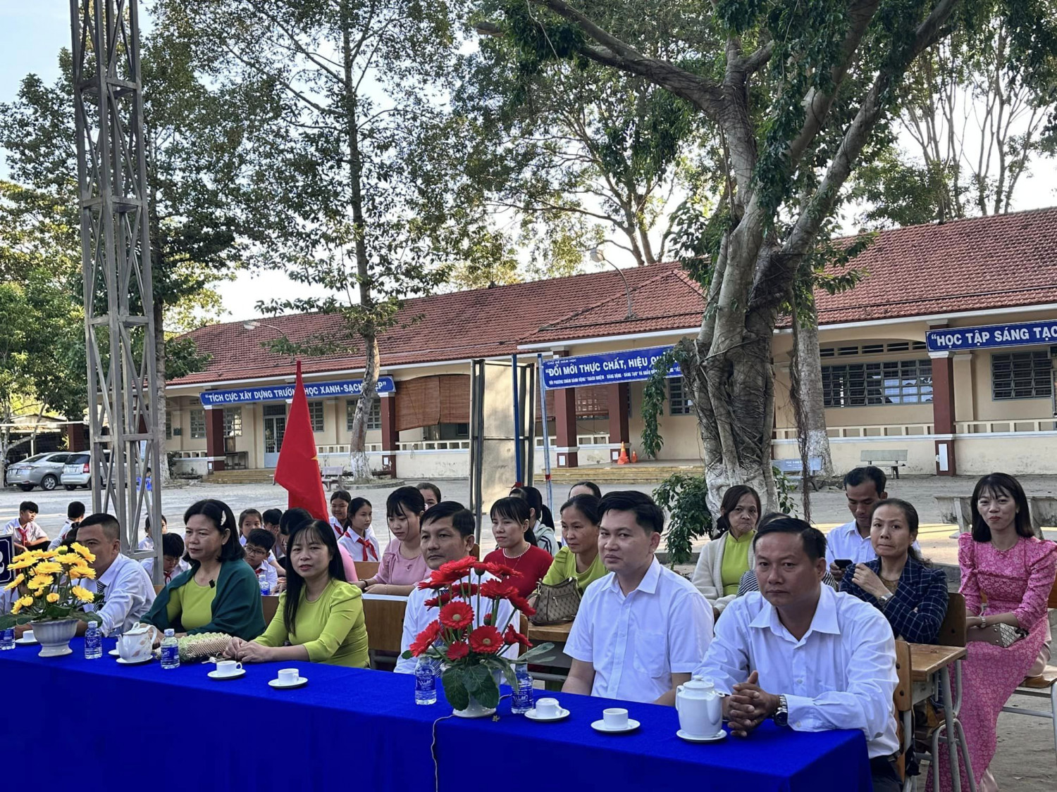 V d bui l vi s có mt ca đại din lãnh đạo địa phương, đại din hi PHHS, cán b, GV, NV và toàn th các em hc sinh trong nhà trường.
