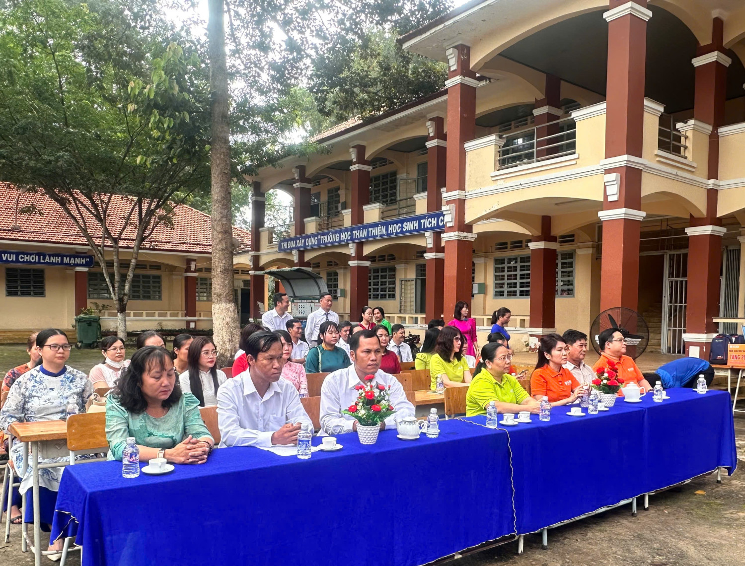 Trường rất vinh dự được đón tiếp các quý vị đại biểu của Huyện, Phòng GD&ĐT, các mạnh thường quân, các ban ngành đoàn thể, quý phụ huynh học sinh. Đặc biệt với gần 40 cán bộ giáo viên, nhân viên nhà trường cùng hơn 600 em học sinh cũng có mặt đầy đủ trong buổi lễ trọng đại này.